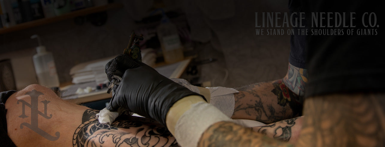 Fred's obsession with tattooing began at a very young age after seeing the old military tattoos on his grandfathers forearm. The worn yet readable images solidified his fate and lifelong goal to become a tattooer. Finding an apprenticeship in Texas, where he learned tattooing the old way, making your tools that make your living, he sat out on his path. Now with 20+ years in the trade it's time to give back to the business that gave him everything.Lineage Needle Co.is built upon the foundations laid by those who came before us,we stand on the shoulders of giantsto bring you the quality you